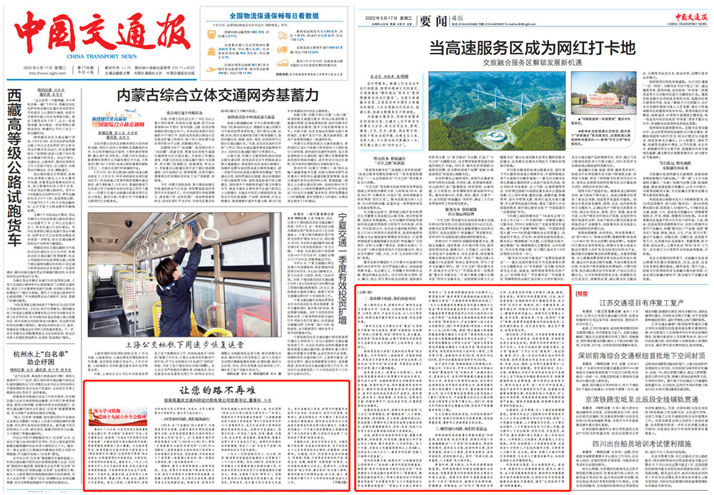 5月17日是招商交科建院紀(jì)念日,恰逢招商局集團(tuán)150周年華誕,招商交科開(kāi)展了系列活動(dòng),以簡(jiǎn)單陽(yáng)光、活力健康的方式,與公司全體員工共同紀(jì)念公司生日,共創(chuàng)公司高質(zhì)量發(fā)展事業(yè)。 《中國(guó)交通報(bào)》頭