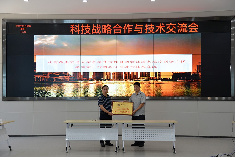 2020年7月27日,西南交通大學(xué)系統(tǒng)可信性自動(dòng)驗(yàn)證國(guó)家地方聯(lián)合工程實(shí)驗(yàn)室專(zhuān)職副主任李志輝一行6人到訪招商檢測(cè)公司,開(kāi)展科技戰(zhàn)略合作與技術(shù)交流。會(huì)議在招商檢測(cè)檢養(yǎng)數(shù)據(jù)中心舉行,由公司副總經(jīng)理劉涌江主持