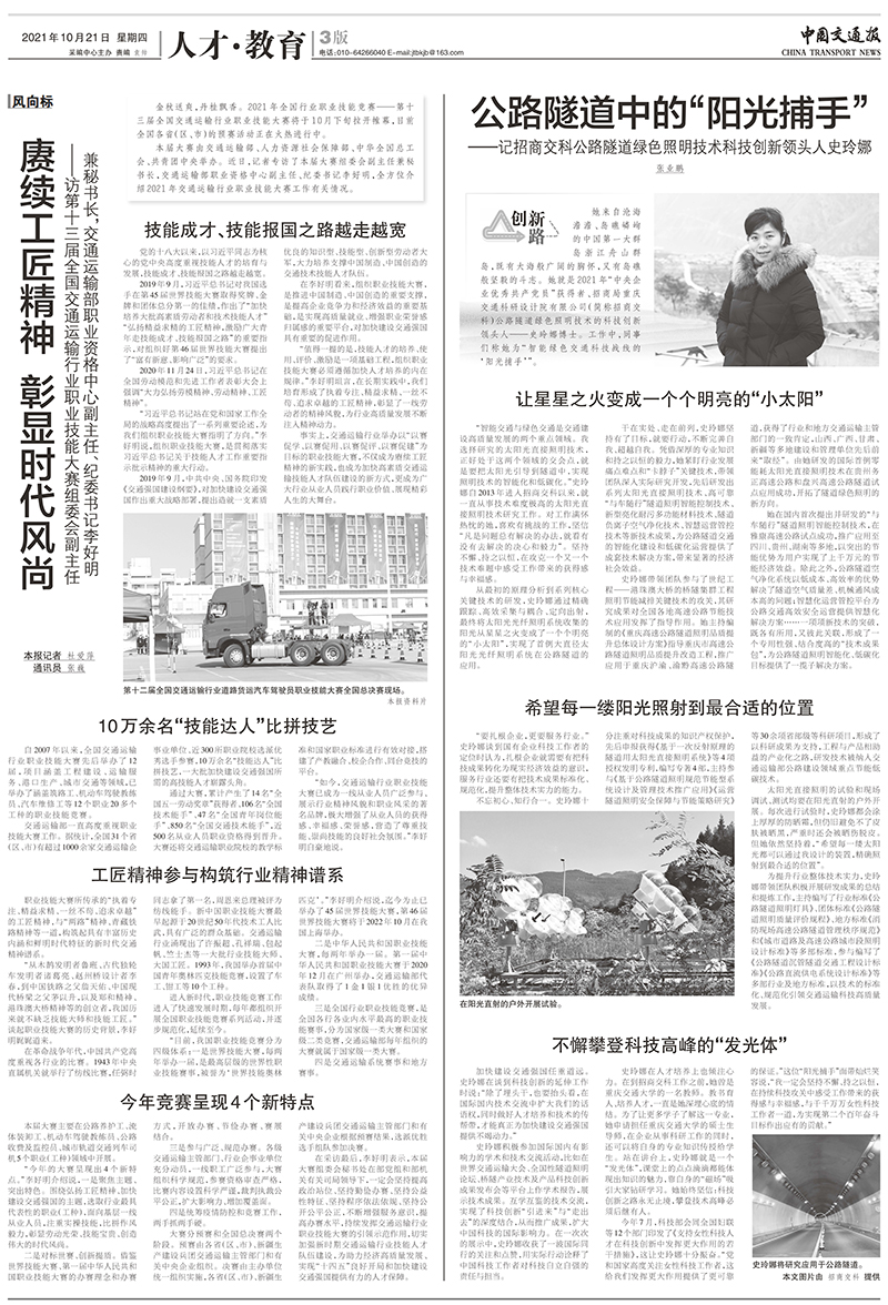 《中國(guó)交通報(bào)》刊文報(bào)道“中央企業(yè)優(yōu)秀共產(chǎn)黨員”史玲娜先進(jìn)事跡