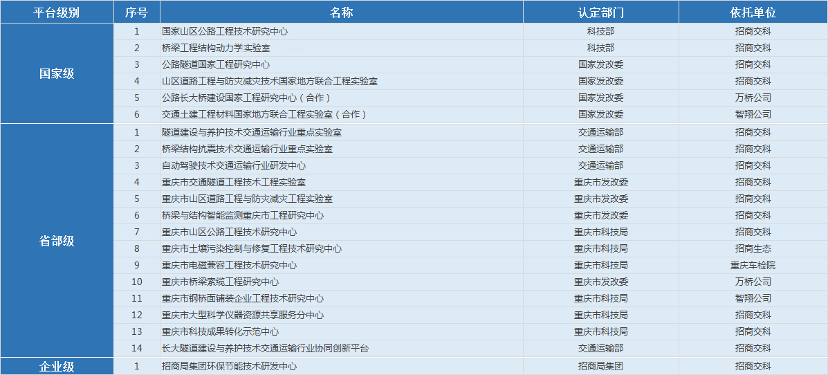 招商交科是國(guó)家級(jí)交通行業(yè)科技創(chuàng)新基地,建有國(guó)家級(jí)、省部級(jí)重點(diǎn)(工程)實(shí)驗(yàn)室和工程(技術(shù))研究中心等各級(jí)、各類研究開發(fā)平臺(tái)21個(gè),其功能覆蓋了產(chǎn)業(yè)鏈中的基礎(chǔ)研究、應(yīng)用研究、技術(shù)開發(fā)、技術(shù)轉(zhuǎn)移、工程化和產(chǎn)業(yè)化等多個(gè)環(huán)節(jié),有力支撐了公路交通行業(yè)各項(xiàng)專業(yè)技術(shù)的發(fā)展,構(gòu)建了集約高效的科技創(chuàng)新體系。