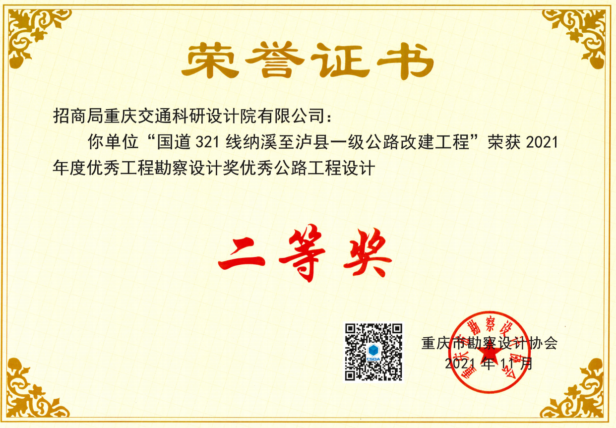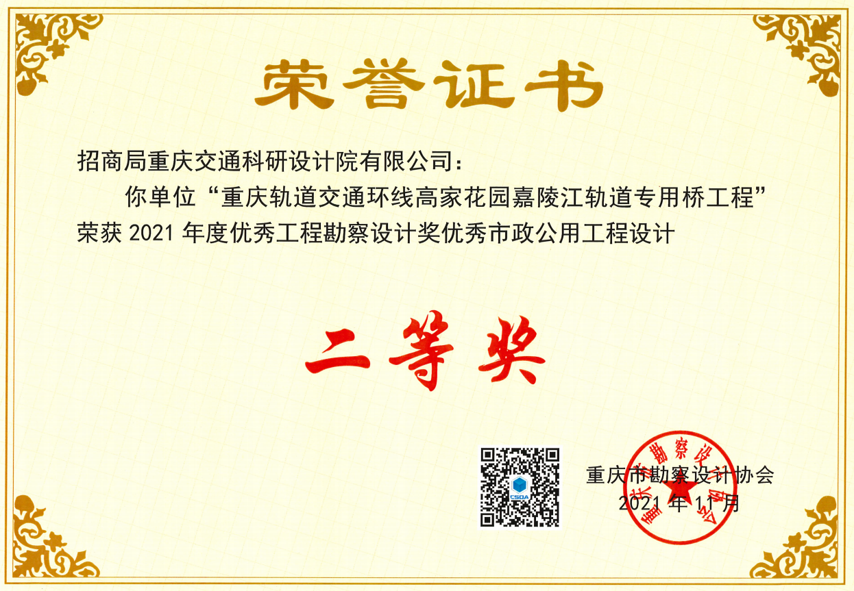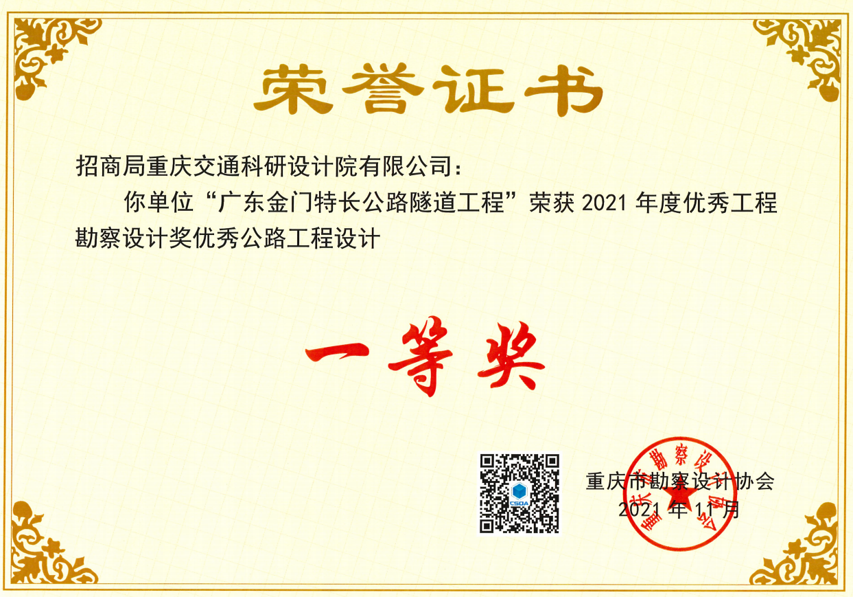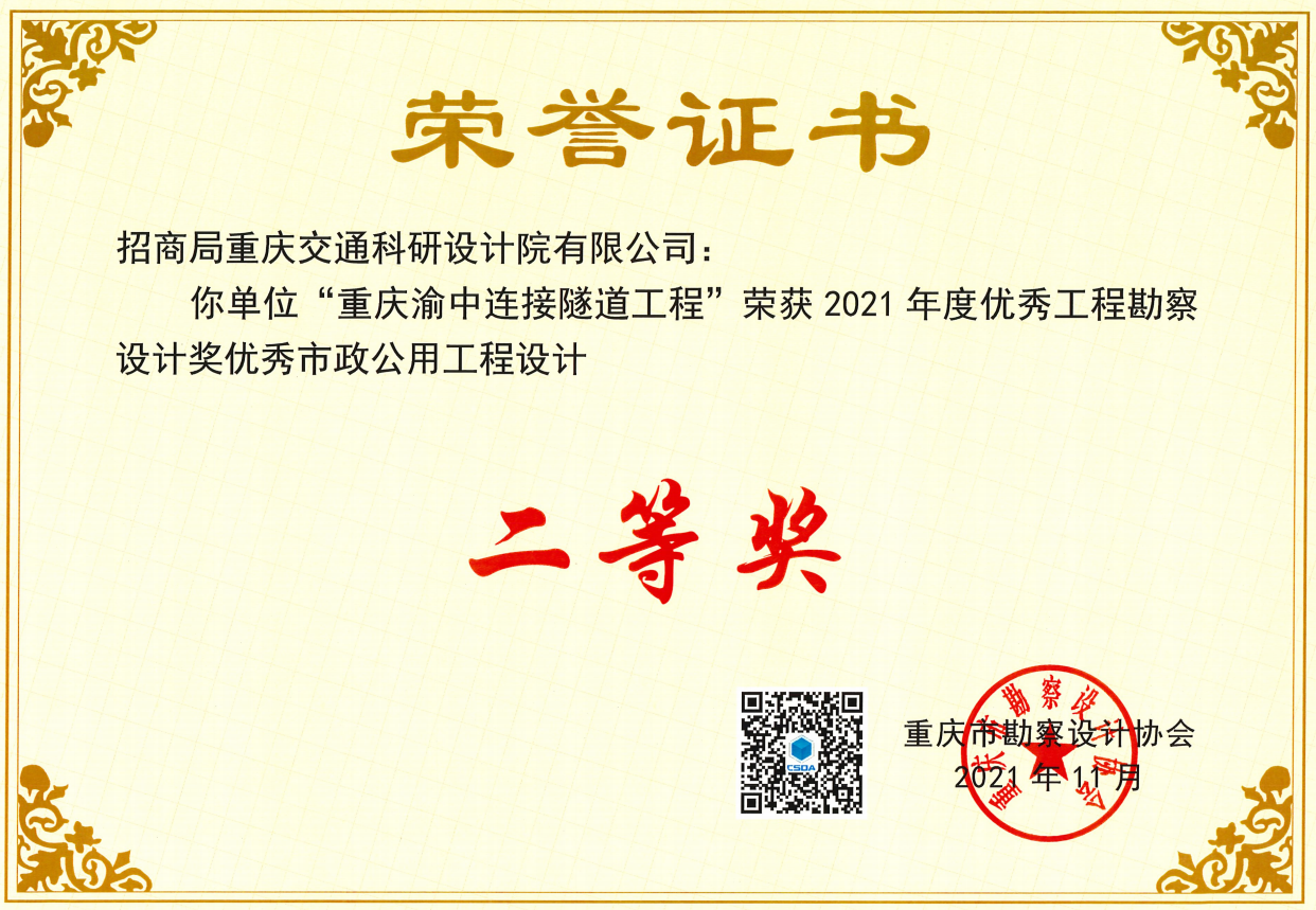 招商交科榮獲6項(xiàng)2021年度重慶市勘察設(shè)計(jì)協(xié)會(huì)優(yōu)秀設(shè)計(jì)獎(jiǎng)