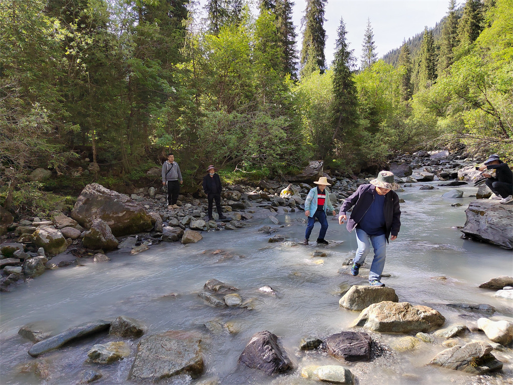 緊接著,項目組一行按規(guī)定隔離14天,為了不耽誤工作,隔離期間,項目組人員臨時搭了一個辦公室,抓緊時間開展前期工作。主動與地勘單位接頭,就勘察的數(shù)據(jù)進行了認(rèn)真討論,并根據(jù)業(yè)主要求做好方案調(diào)整。隔離期結(jié)束后,項目組立即進入了踏勘工作,攀崖涉水,走泥路,鉆樹叢,雖然是萬物復(fù)蘇的五月,遠處卻是白雪皚皚的天山。雪山之下,寒風(fēng)刺骨。時而大雨傾盆雷聲陣陣,時而驕陽似火炙熱灼灼,讓人深切體會到了那句老話——“早穿棉襖午穿紗,圍著火爐吃西瓜”。