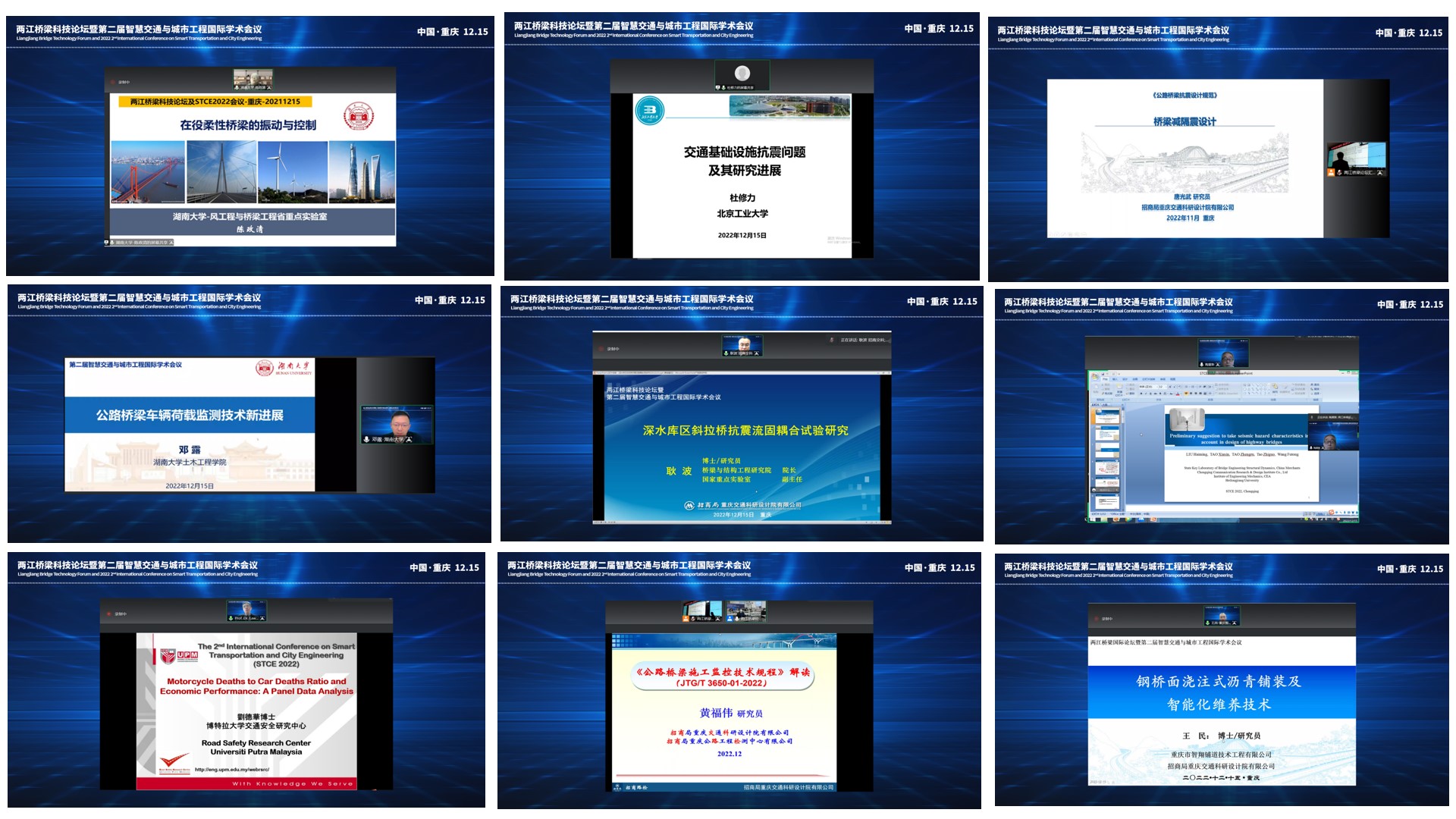 12月15日,由招商局重慶交通科研設(shè)計(jì)院有限公司(簡(jiǎn)稱(chēng)“招商交科”)主辦的兩江橋梁科技論壇暨第二屆智慧交通與城市工程國(guó)際學(xué)術(shù)會(huì)議以線下+線上的形式圓滿召開(kāi)。線下、線上共有1000余位來(lái)自國(guó)內(nèi)外知名高校、科研機(jī)構(gòu)的專(zhuān)家學(xué)者連線出席,參與大會(huì)討論。