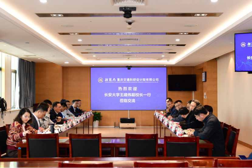 長安大學(xué)社會合作處處長楊紅斌,西安長安大學(xué)工程設(shè)計(jì)院有限公司總經(jīng)理劉紅平,招商交科科創(chuàng)中心主任唐勝傳,首席數(shù)字官、數(shù)字化中心主任周健,招商路檢總經(jīng)理黃福偉,物康科技總經(jīng)理孟利波及有關(guān)研究院人員參加座談。