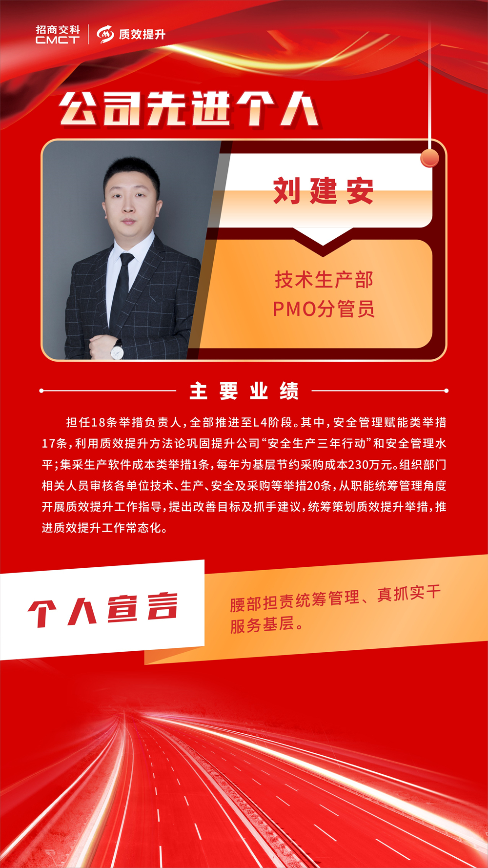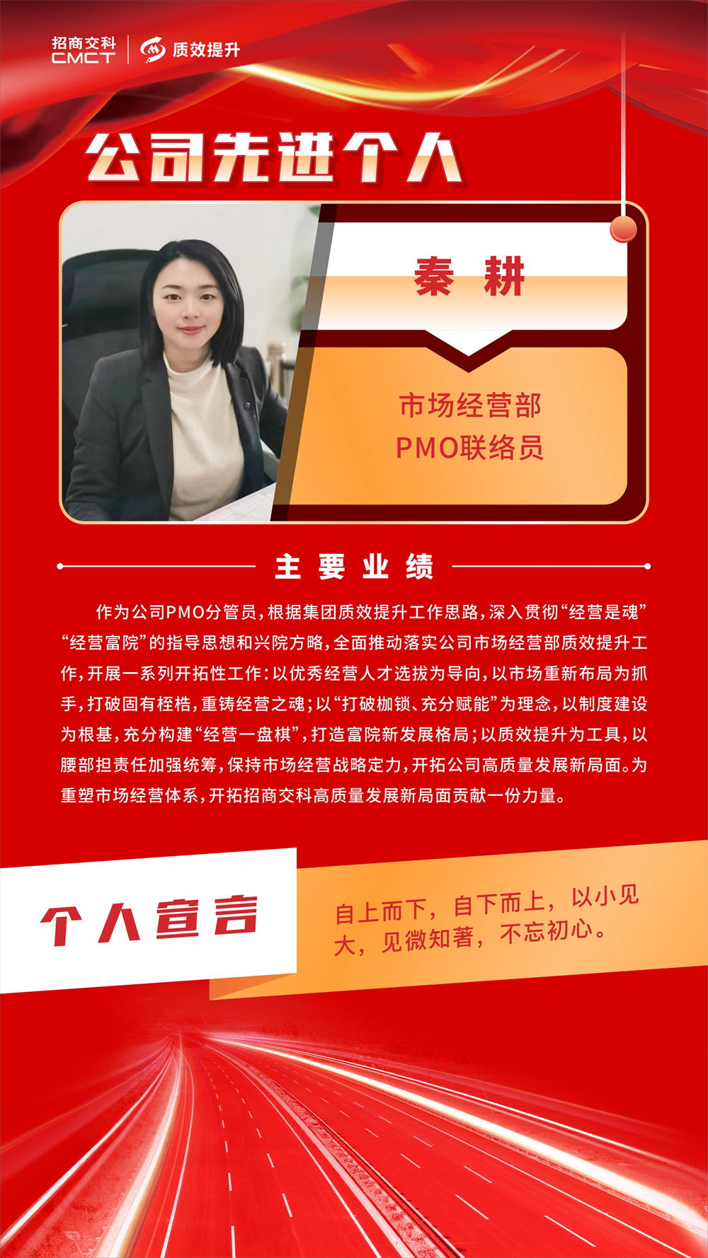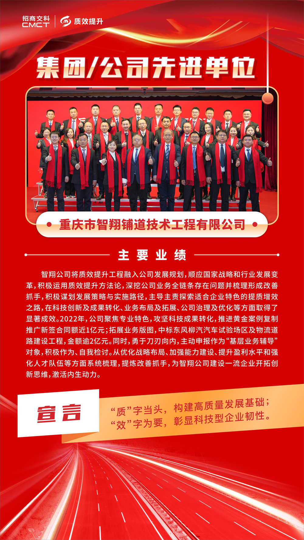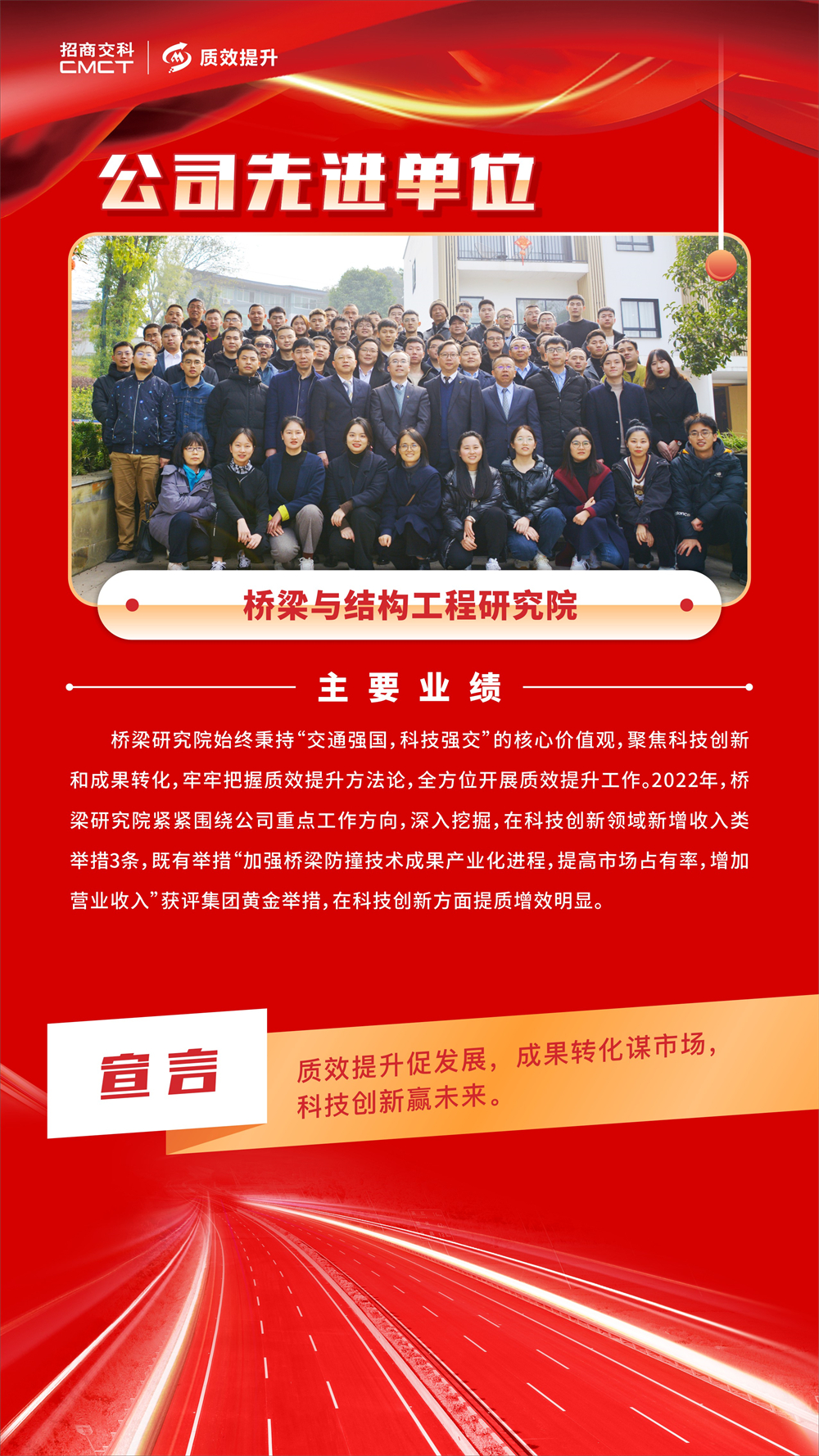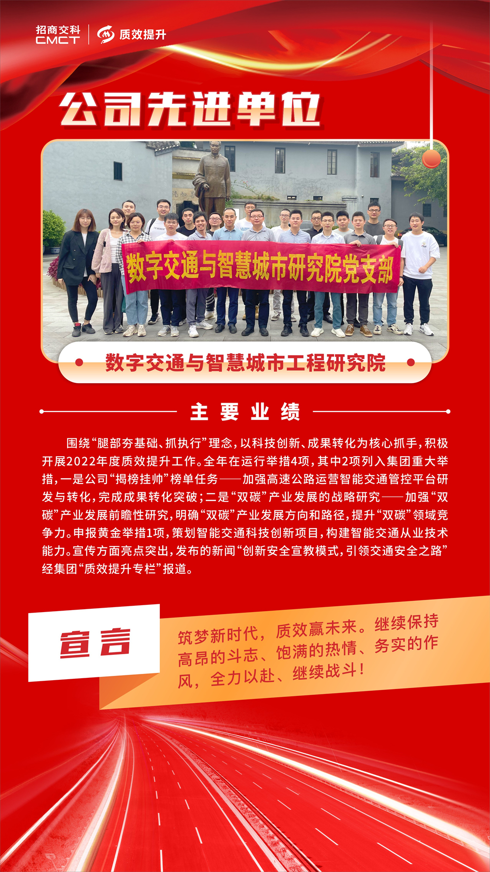 ? 各部門(mén)和單位要以先進(jìn)單位、先進(jìn)個(gè)人為榜樣,堅(jiān)定不移推動(dòng)質(zhì)效提升工作走深走實(shí),助力招商交科高質(zhì)量發(fā)展。