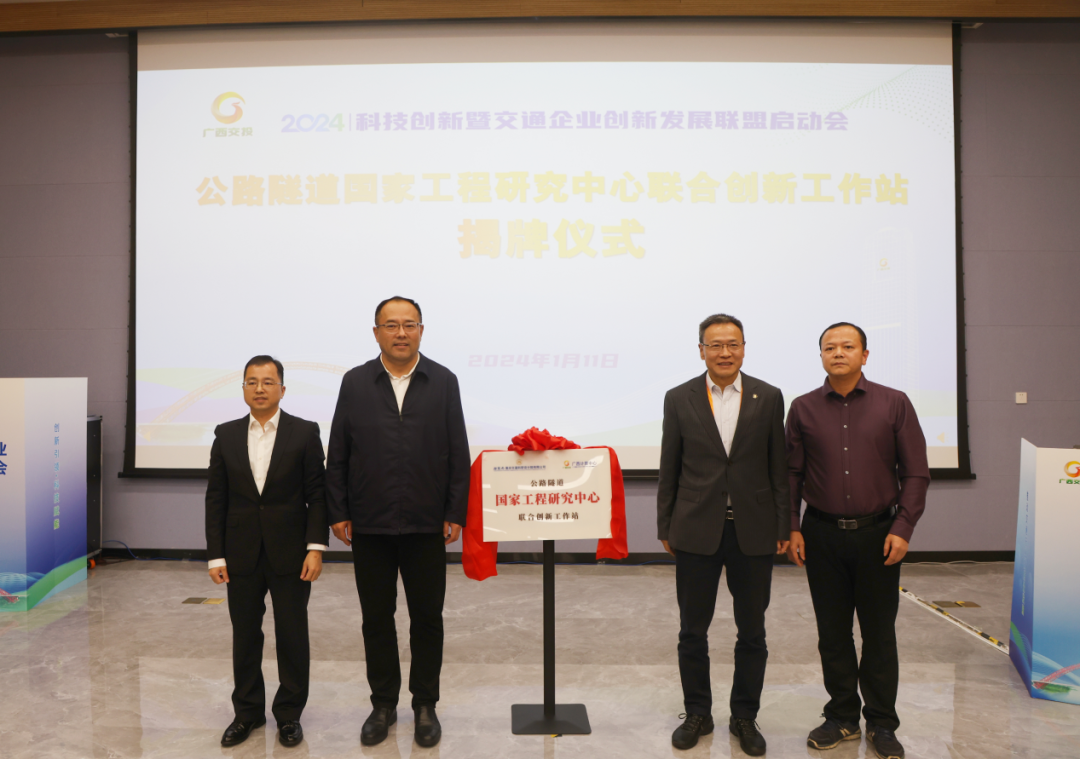 隨后,楊國峰出席了《交通數(shù)字化建設(shè)發(fā)展》分論壇暨公路隧道國家工程研究中心聯(lián)合創(chuàng)新工作站揭牌儀式。公路隧道國家工程研究中心聯(lián)合創(chuàng)新工作站是由招商交科與廣西計(jì)算中心有限責(zé)任公司(以下簡(jiǎn)稱“廣西計(jì)算中心”)共同建立,旨在智慧交通、智慧城市、野外科學(xué)觀測(cè)站數(shù)字化建設(shè)等重點(diǎn)研究領(lǐng)域增強(qiáng)科技創(chuàng)新研發(fā)合作。廣西交投副總經(jīng)理廉向東,廣西計(jì)算中心黨委書記、董事長(zhǎng)黃永剛,招商交科隧道研究院副院長(zhǎng)、公路隧道國家工程研究中心副主任胡學(xué)兵出席并共同揭牌。