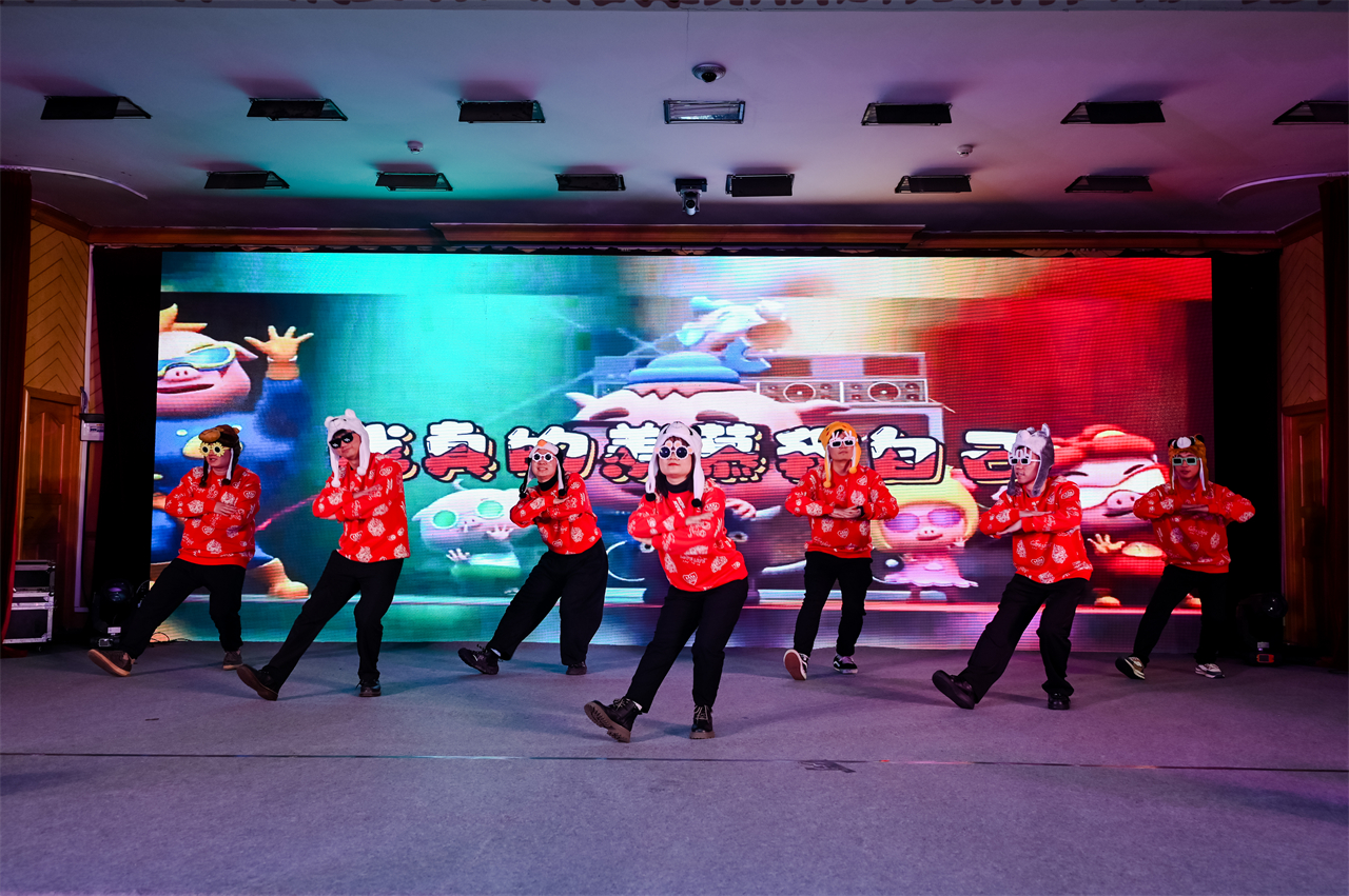 智翔公司首先帶來舞蹈串燒《豬豬俠-相親與相愛》,跳著相親相愛一家人,表達(dá)著對新年的期待與祝福。