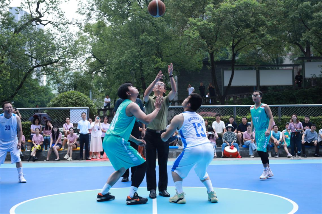 吳永清為籃球賽開球。賽場上,雙方隊(duì)員積極拼搶,氣氛緊張熱烈。每一次精準(zhǔn)的投籃、巧妙的傳球、堅(jiān)固的防守,都讓現(xiàn)場觀眾情緒高漲,熱血沸騰。球員們在場上展現(xiàn)出了不俗的球技和堅(jiān)韌的競技精神,觀眾們則用熱烈的掌聲和歡呼為他們的每一次精彩表現(xiàn)喝彩。