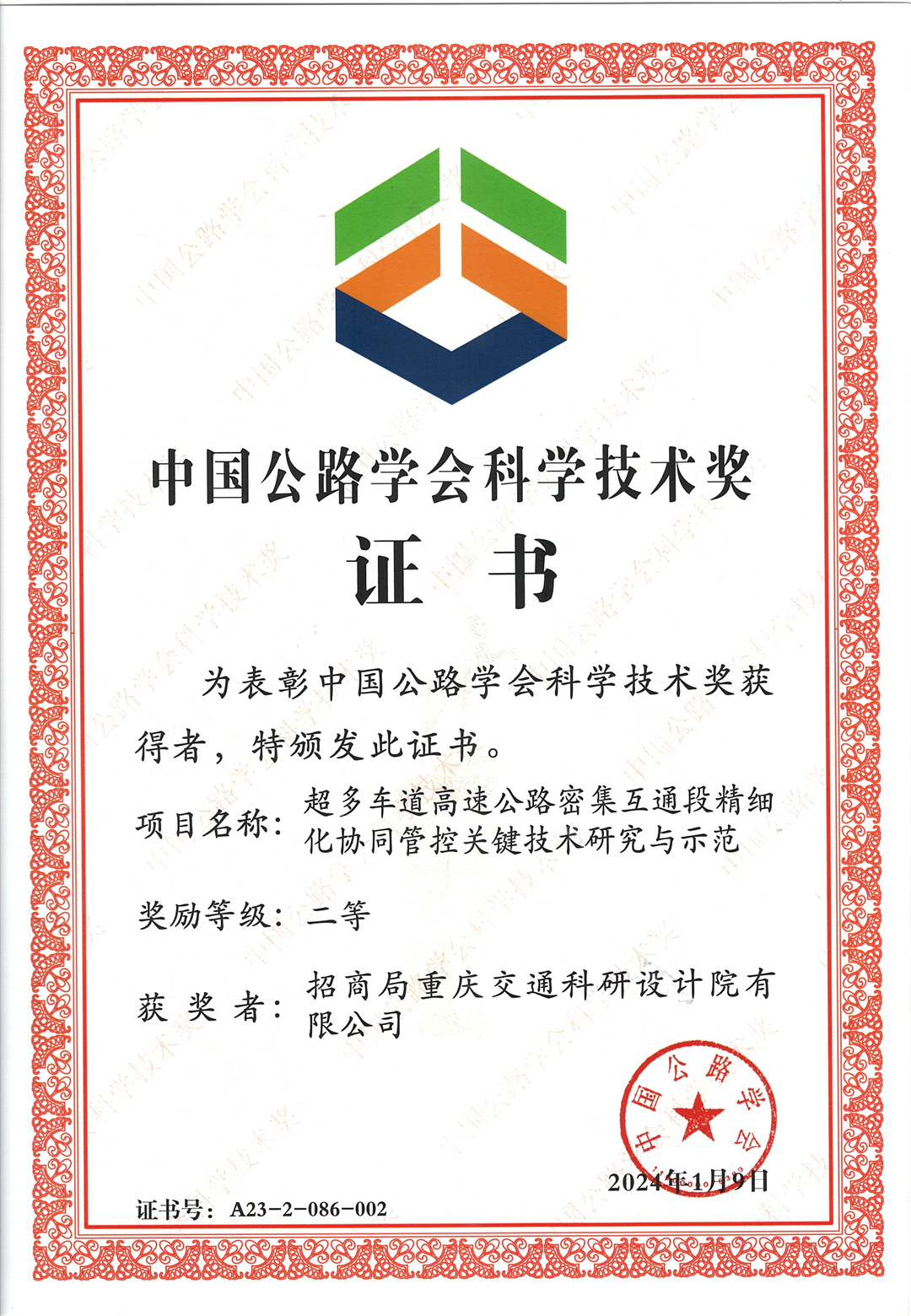 2023年度中國公路學(xué)會科學(xué)技術(shù)二等獎