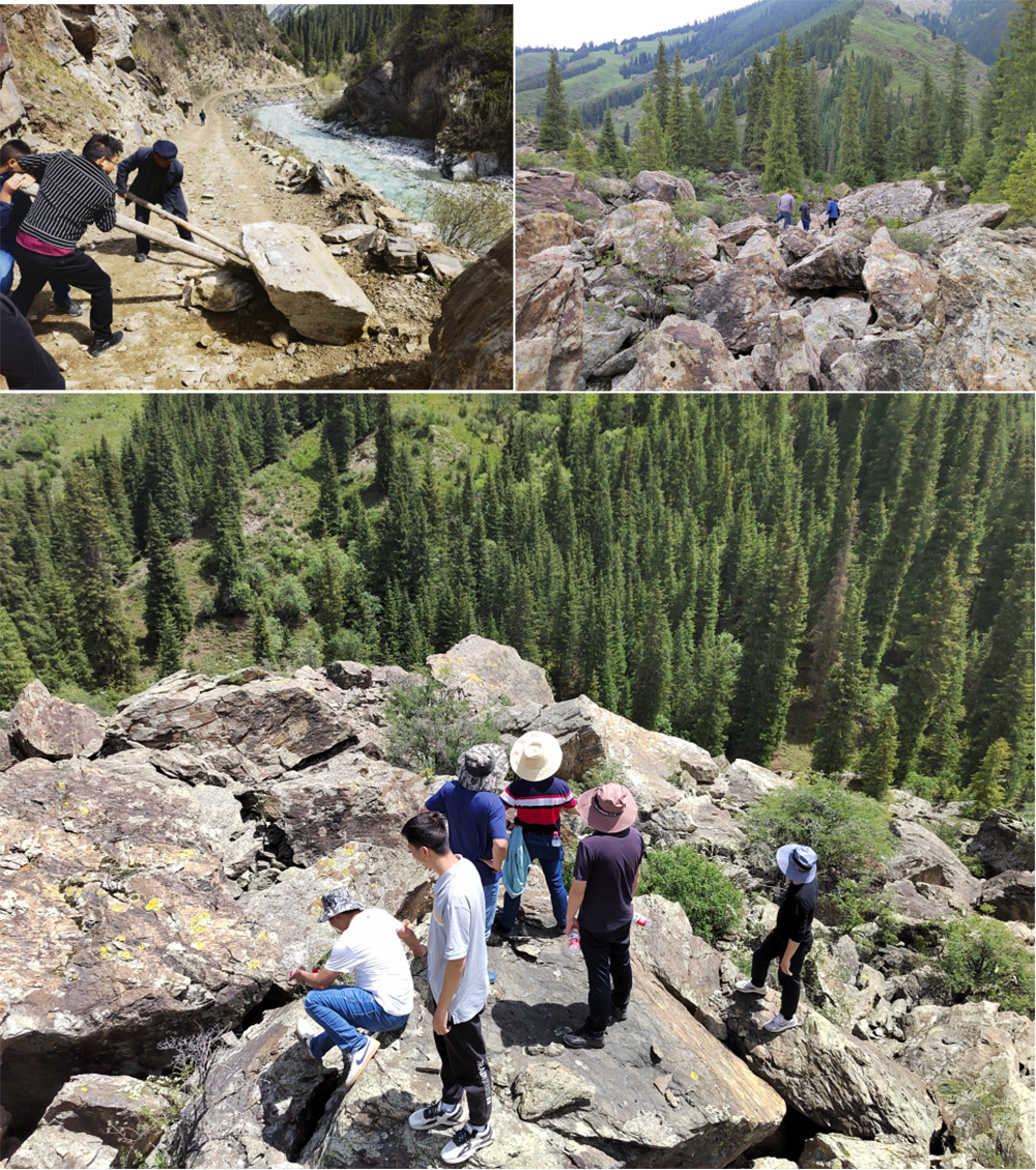 有一次,項(xiàng)目組來到巨石崩塌堆積體點(diǎn)位,大家在巨石堆中相互攙扶著小心前行。道路艱險(xiǎn),隨時(shí)有掉入石堆縫隙的危險(xiǎn),即使已經(jīng)很小心了,汪余波腿部還是被尖銳的石頭刮傷,考慮到時(shí)間緊迫,同時(shí)不想連累同行人員,他也只是簡(jiǎn)單處理一下傷口繼續(xù)前行。