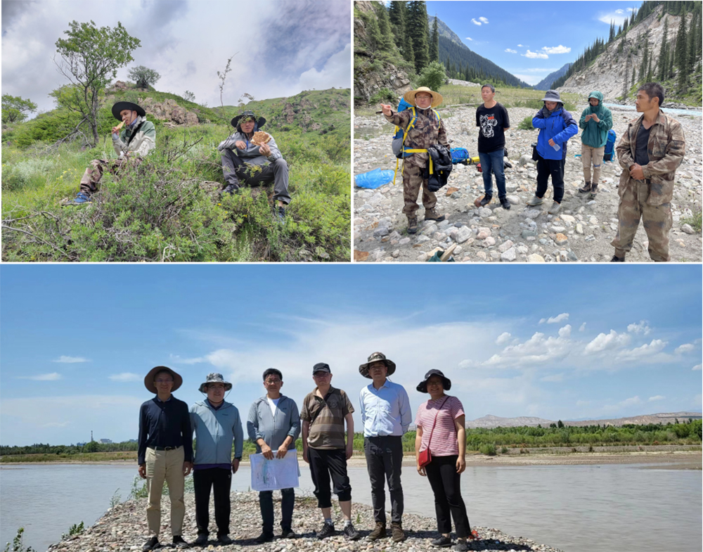 一天早飯后,踏勘隊(duì)伍向目標(biāo)方向前進(jìn)。大概中午時(shí)分,東都果爾薩依河河道突然漲水,巖石雜陳,水勢(shì)兇險(xiǎn)。根據(jù)現(xiàn)場(chǎng)判斷,如果繞路前行,大概需要花費(fèi)一天時(shí)間,當(dāng)天的踏勘工作就沒法完成。為順利完成任務(wù),大家決定涉水前行。剛一入腳,一個(gè)個(gè)又很快“彈”回到岸上,口中不由得叫道:“水怎么這樣涼!”原來,河里的水由天山雪水消融匯集而成,水溫極低,即便夏日午后也冰涼刺骨。有了初次涉水的心里建設(shè),一個(gè)個(gè)鼓起勇氣再次入水。順利渡河后,顧不上被打濕的鞋子衣服,趕緊投入到現(xiàn)場(chǎng)工作中。