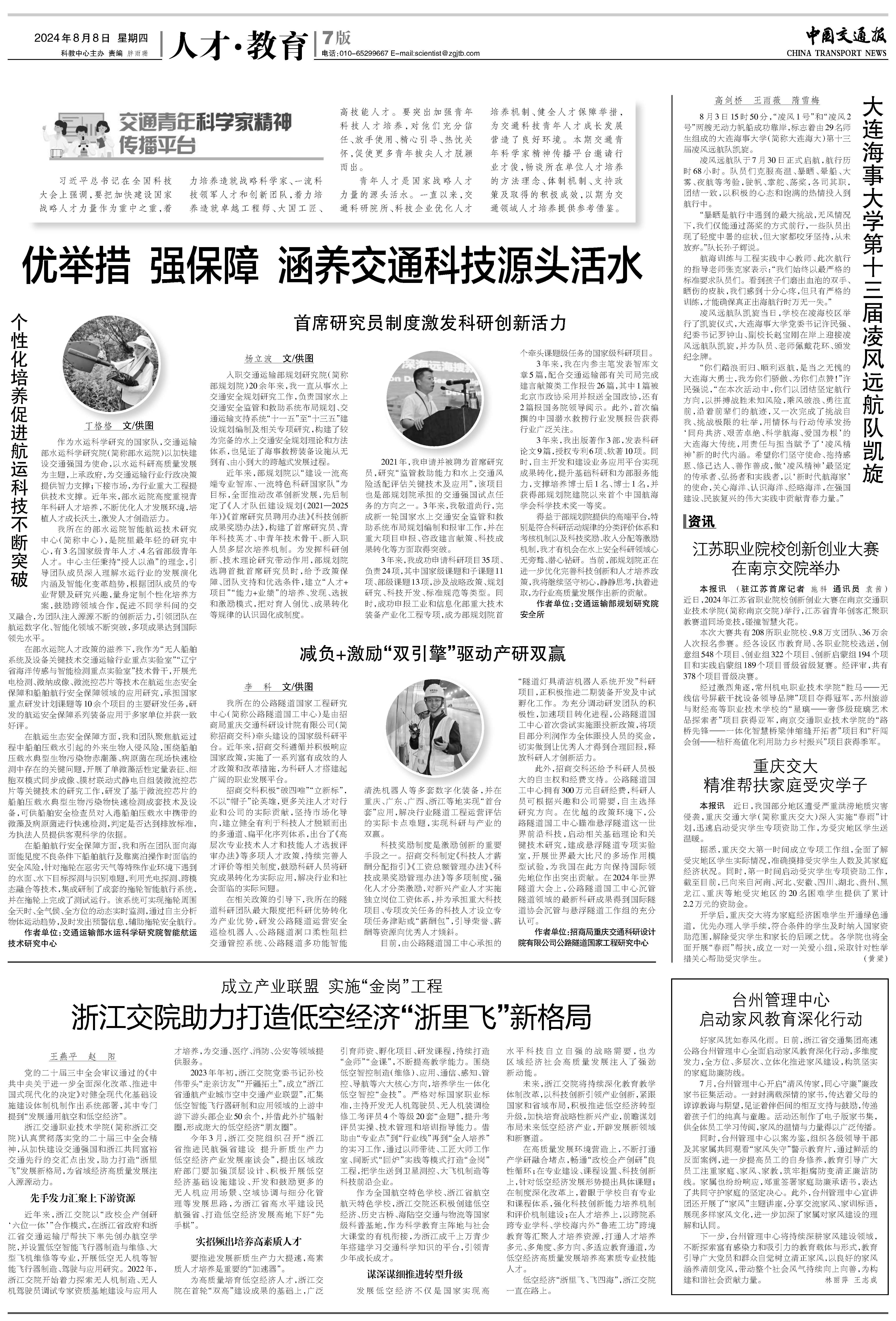 8月8日,《中國(guó)交通報(bào)》在第七版“人才·教育”專欄中,以《減負(fù)+激勵(lì)“雙引擎”驅(qū)動(dòng)產(chǎn)研雙贏》為題,刊發(fā)了招商交科公路隧道國(guó)工中心李科研究員的署名文章,談到了招商交科在人才政策與激勵(lì)機(jī)制上的創(chuàng)新舉措。面對(duì)“破四唯”“立新標(biāo)”的時(shí)代要求,招商交科聚焦人才的實(shí)際貢獻(xiàn)與行業(yè)價(jià)值,通過(guò)建立健全多通道、扁平化的序列體系,以及出臺(tái)一系列合理的人才政策,為科技人才搭建廣闊的職業(yè)發(fā)展舞臺(tái),激發(fā)科研人員的創(chuàng)新活力與潛能?,F(xiàn)將全文轉(zhuǎn)載如下: