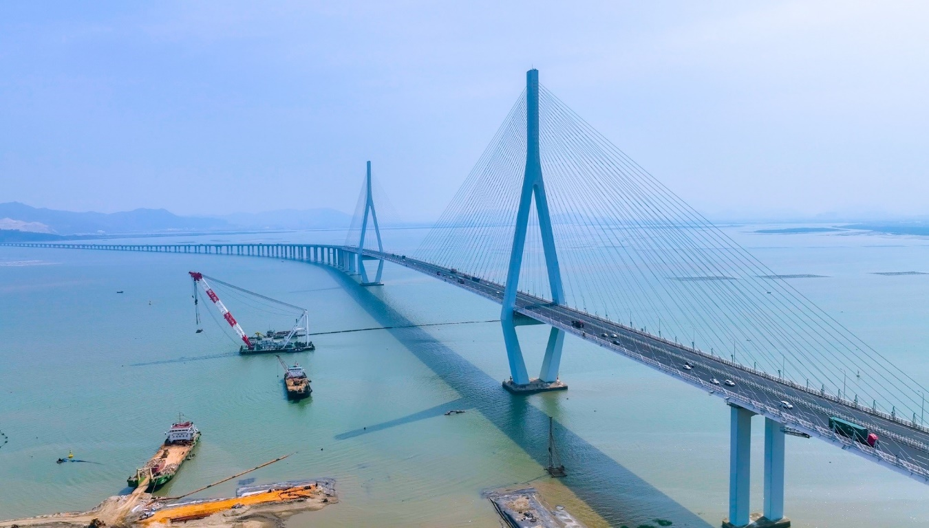 2.橋址地處臺灣海峽地震帶。開展了全世界首例大跨徑斜拉橋全橋地震模擬試驗、樁—土—樁基礎(chǔ)結(jié)構(gòu)相互作用的地震臺模型試驗研究,設(shè)置縱向阻尼器提高了大橋的抗震性能。