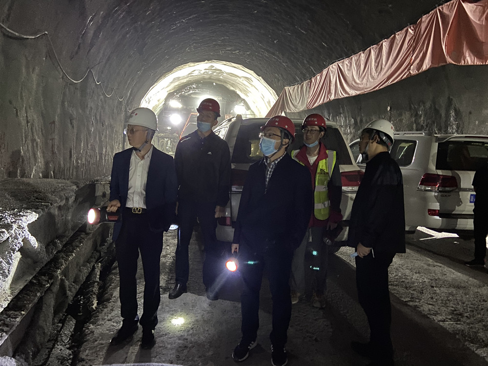 隨后,王福敏一行驅車前往海拔2700米的達巴特隧道的建設現(xiàn)場,冒著寒冷進入隧道內部進行檢查。王福敏在隧道內認真查看監(jiān)控量測斷面布設情況,詢問各個斷面拱頂下沉、周邊收斂變化量及變化速率,并詳細查看掌子面圍巖的巖性結構、節(jié)理產狀與水文地質情況,詢問了解各種指標和參數(shù)。王福敏還就安全生產提出了明確要求。